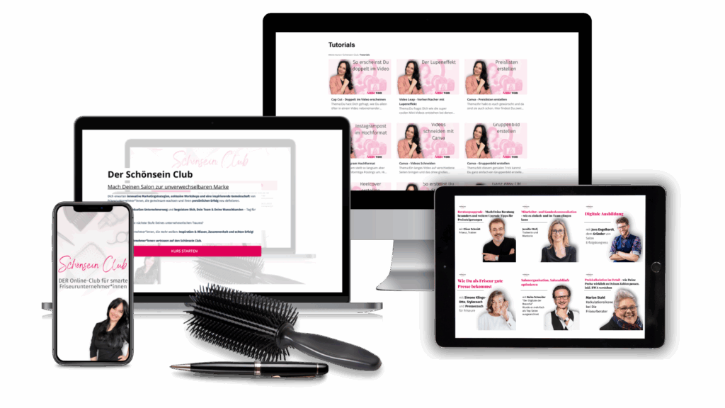 Im Club erhältst du klare Strategien und Umsetzungsansätze, um dein Salonmanagement und Marketing zu optimieren, Routinen zu entwickeln und deine Umsätze zu steigern. So schaffst du Raum für dich und deine Lieben.